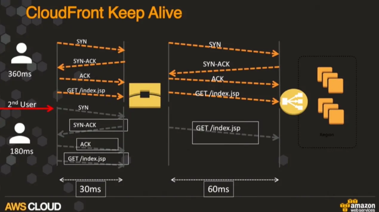 CloudFront 랑 Origin 은 Keep Alive Connection 을 유지하고 있기 때문에 성능상 이점을 가질 수 있다